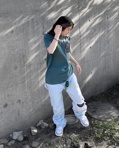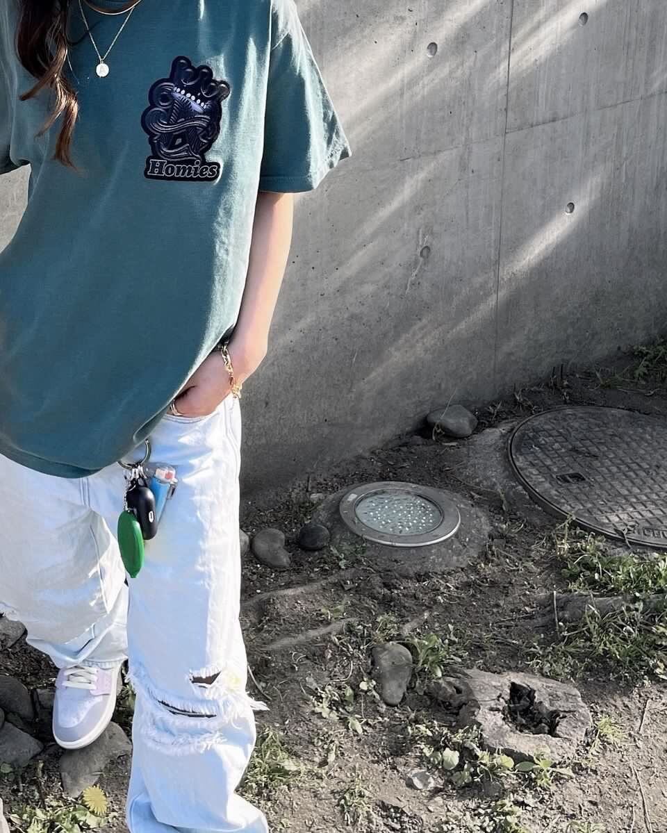 モデルのAyanaが着用している姿やHOMIESのTikTok制作者によって作られた動画がSNSで話題となり、一躍注目を浴びたこのTシャツデザイン。