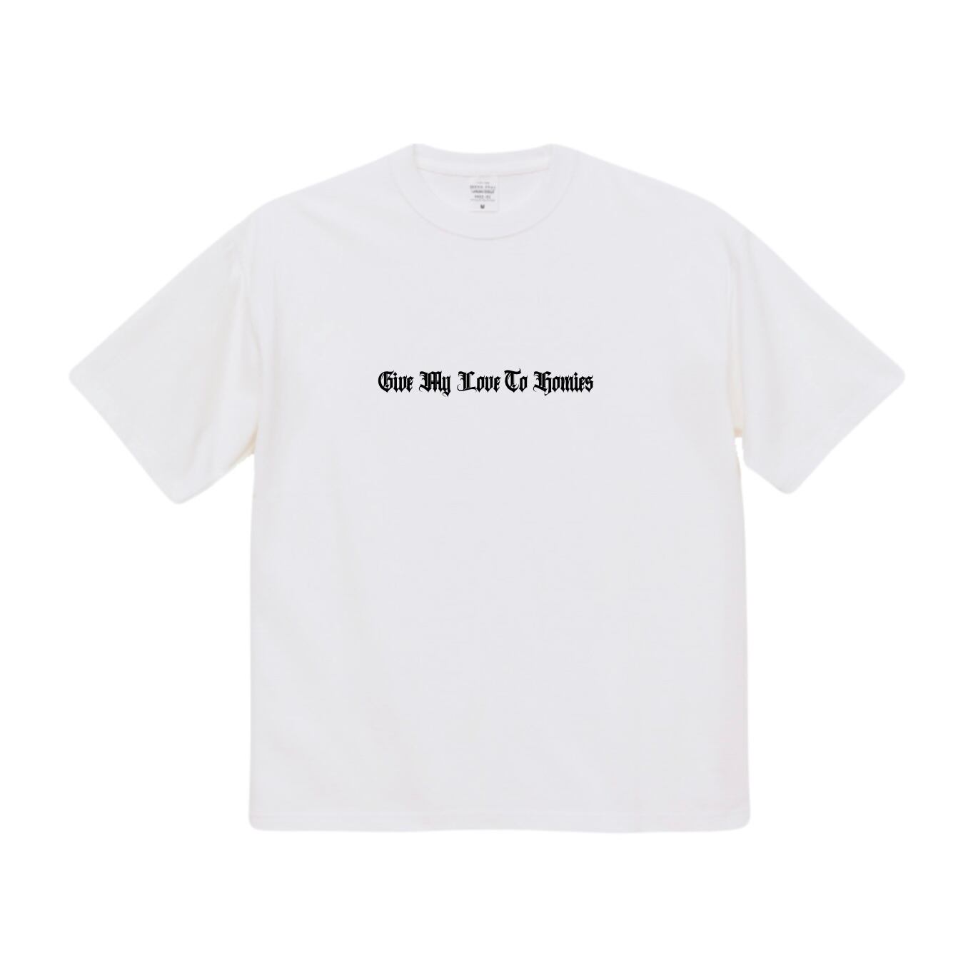 Tシャツの背面には、"Give my love to homies"の頭文字をデザイナーが一つにまとめカッコよくデザインされております。